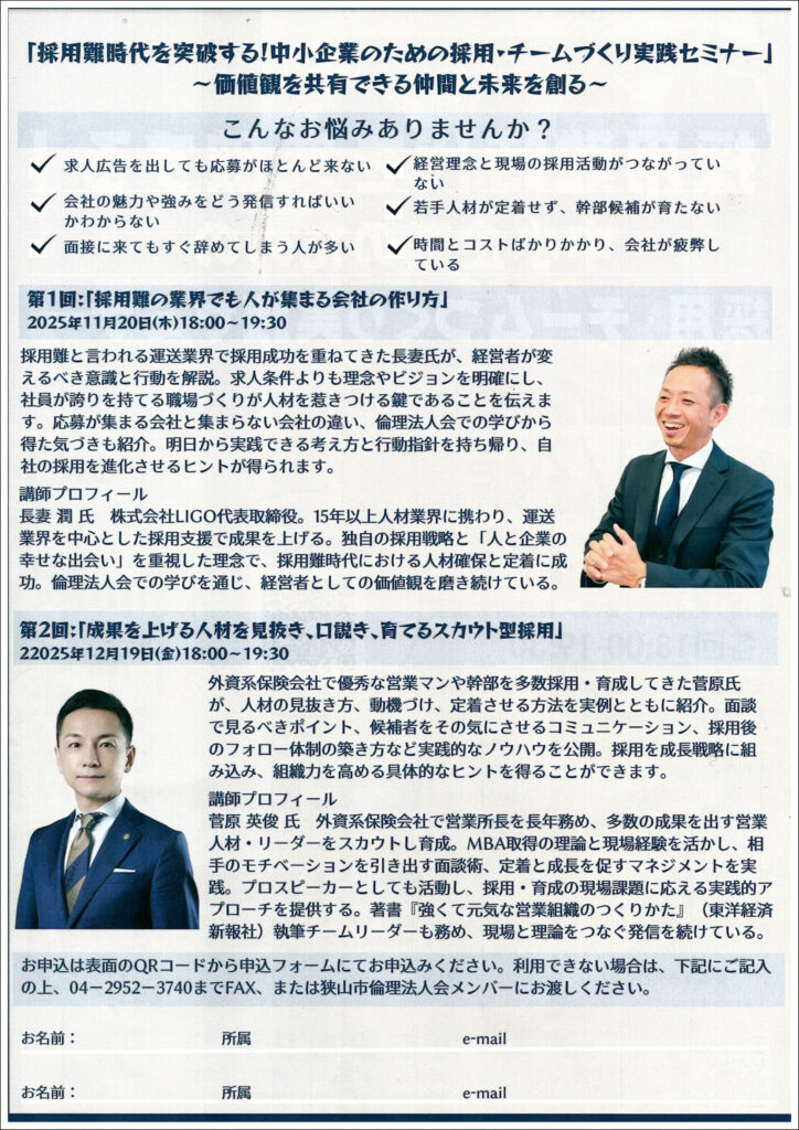 主催は狭山市倫理法人会ですが、気にされずに参加してみて下さい。