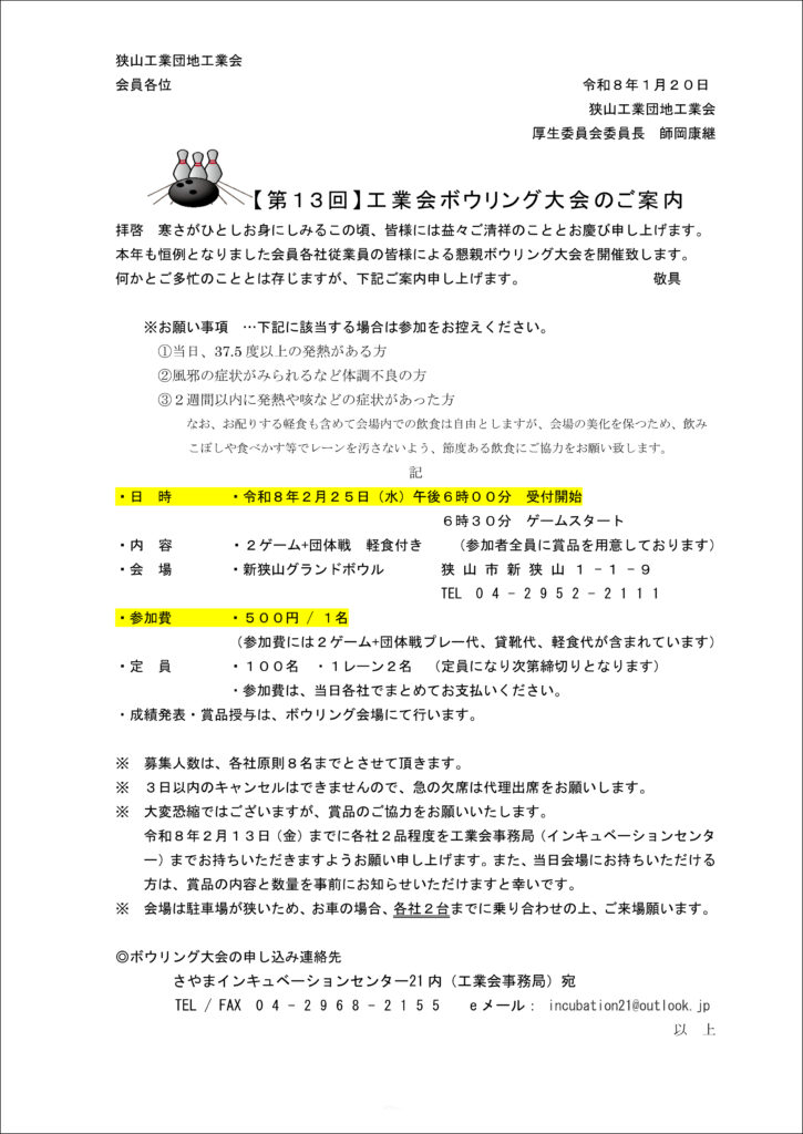 第13回 ボウリング大会開催のご案内
