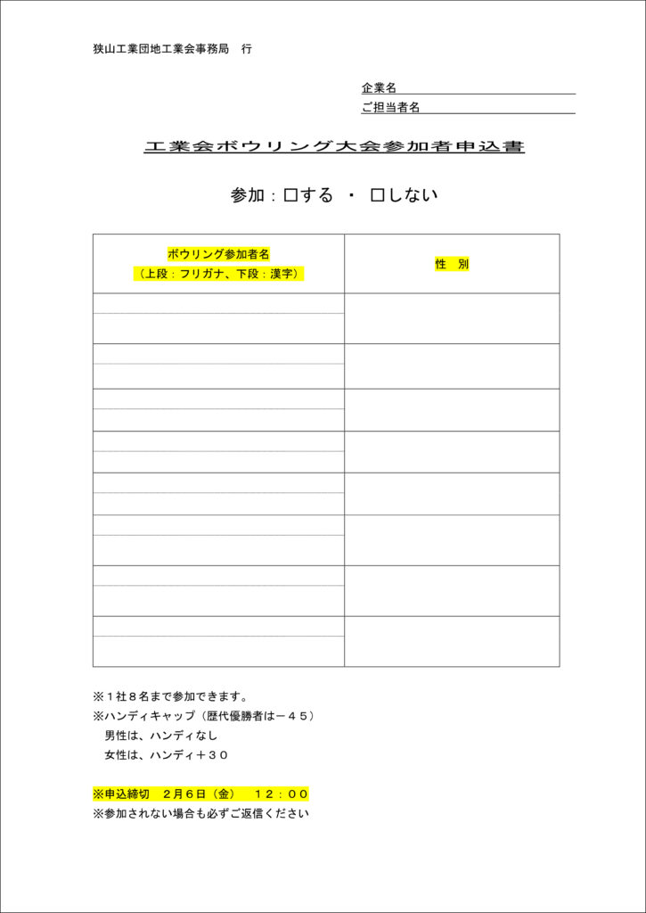 ❖❖ボウリング大会の申し込み連絡先❖❖