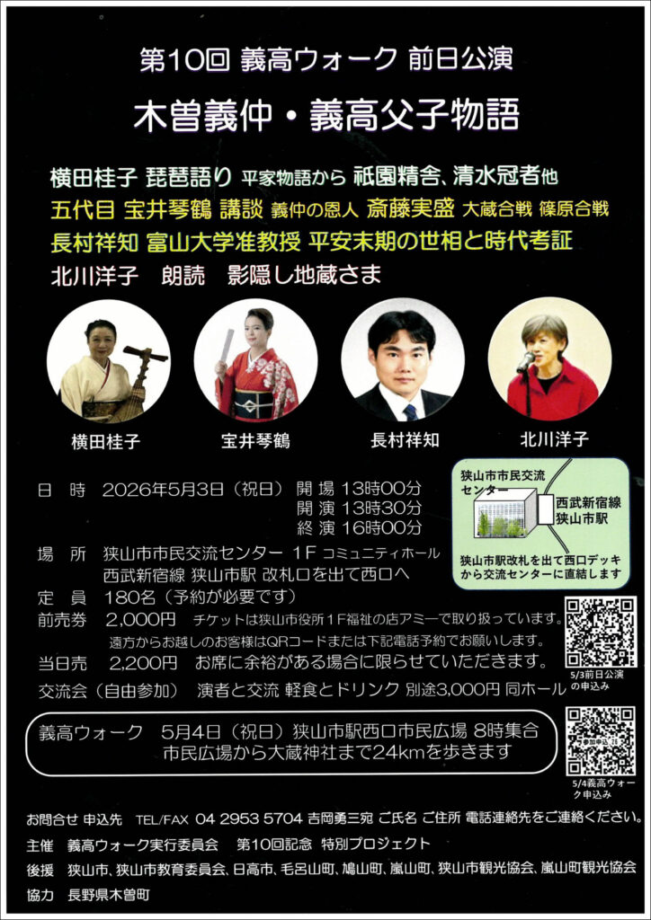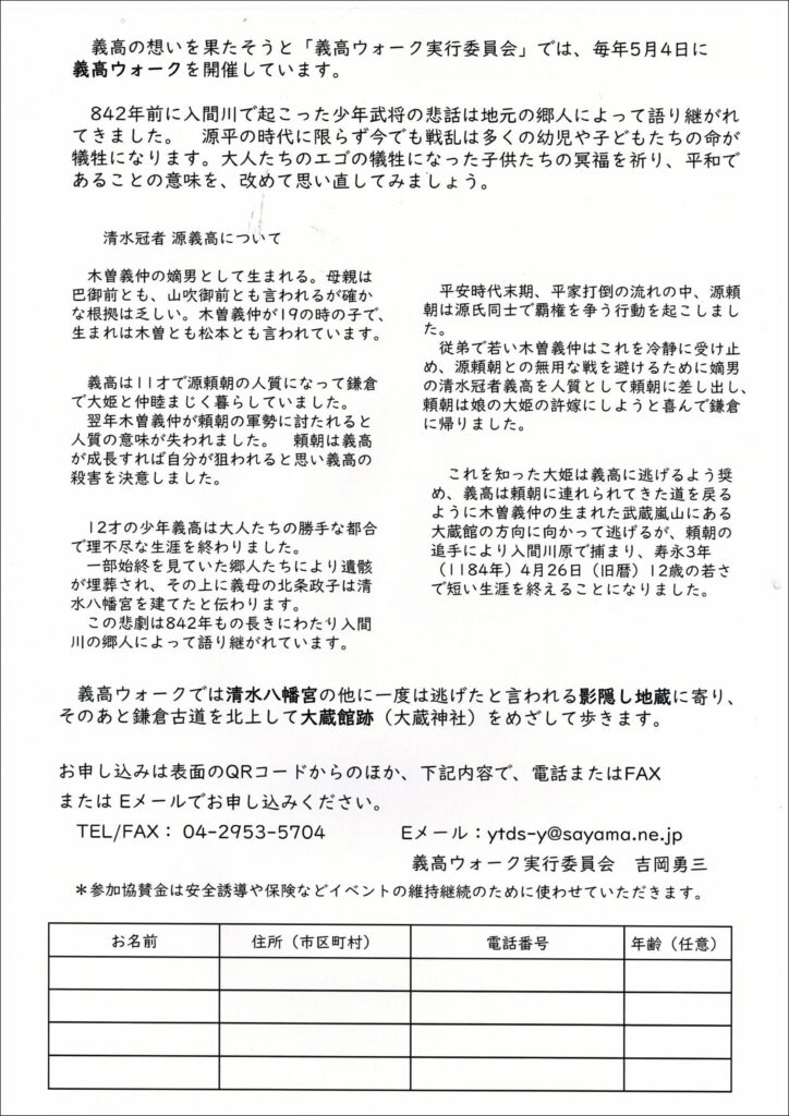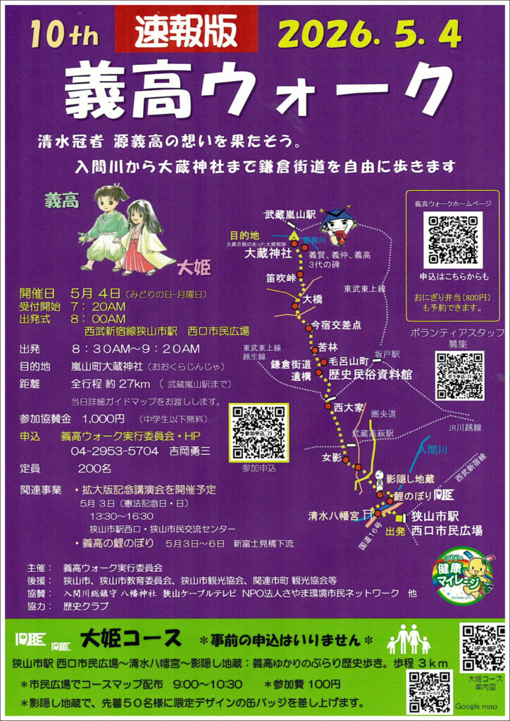 標記 毎年行われる狭山市及び狭山市観光協会協賛の「義高ウォーク」のご案内です。